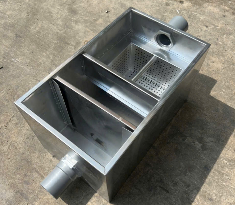 Bể tách mỡ (Grease Trap) là một thiết bị chuyên dụng được lắp đặt ngay dưới chậu rửa công nghiệp hoặc trước hệ thống thoát nước chính của khu bếp. Chức năng chính của hộp bẫy mỡ là lọc bỏ các loại rác thải rắn và tách phần dầu mỡ thừa ra khỏi dòng nước thải trước khi nước chảy vào hệ thống cống ngầm.