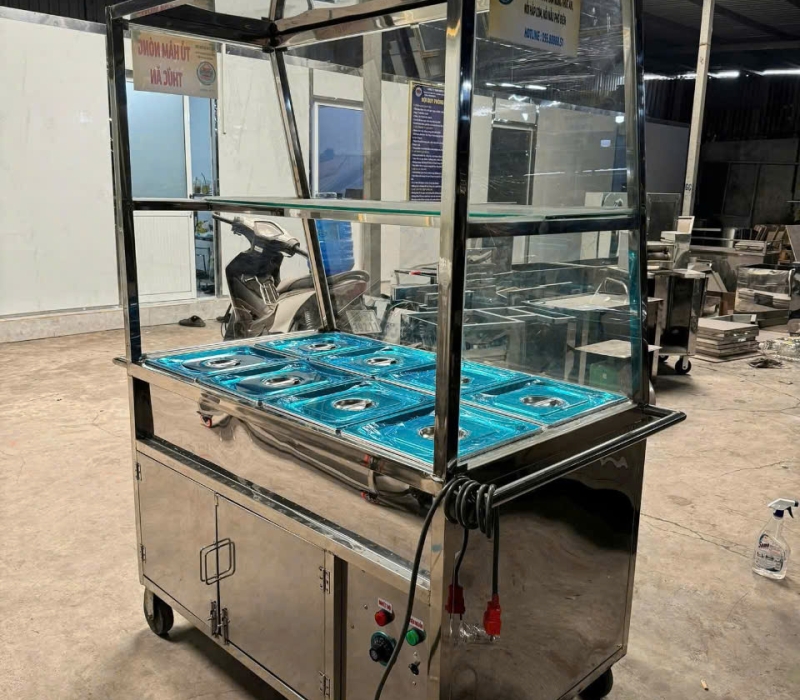 Tủ hâm nóng thức ăn 10 khay là thiết bị quan trọng trong nhà hàng, quán ăn, bếp ăn công nghiệp, căng tin trường học và khu chế xuất. Thiết bị giúp giữ nhiệt thức ăn ổn định từ 60 – 90°C, đảm bảo món ăn luôn nóng hổi, thơm ngon và an toàn vệ sinh thực phẩm trong suốt thời gian phục vụ.